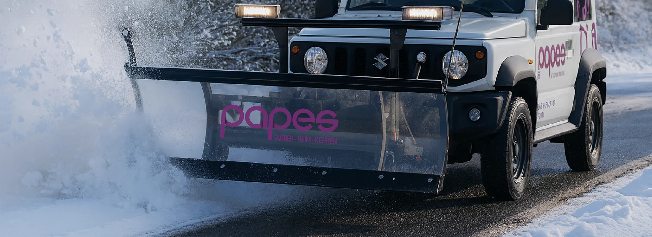 Ausgerüstet mit Schneepflug, Streugerät, unserem Suzuki Jimny und der Schaufel für die letzten Meter starten die Kollegen in ihren Einsatz – zuverlässig, engagiert und bereit für alles, was der Winter bringt.
